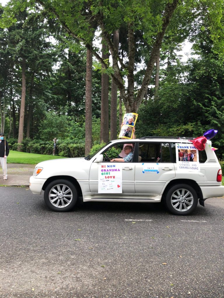 Emerald Heights, a nonprofit senior living community in Redmond, hosted a family and friends “Parade of Love” for residents to safely interact with their loved ones during this social distancing time.