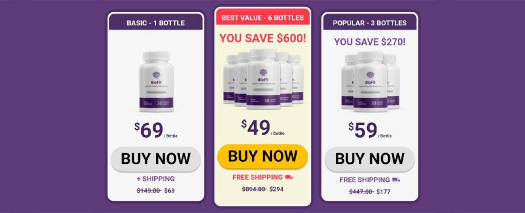 BioFit is available for sale only on its official website, where customers are sure to acquire the original formula and benefit from the best offers. One bottle of BioFit contains 30 capsules of vegetable pills. 30 capsules will last the consumer 1 month. Here are the prices at which BioFit is currently being offered on the supplement’s official website: