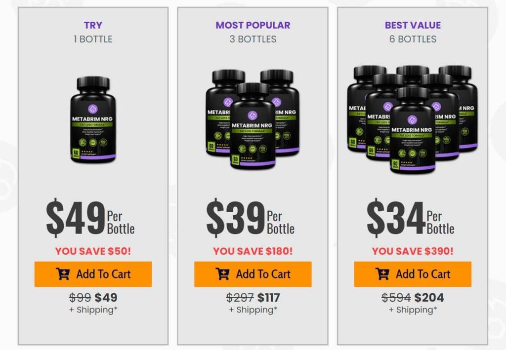A single bottle of Metabrim NRG retails for $49. The prices are reduced with every additional bottle added to the cart.