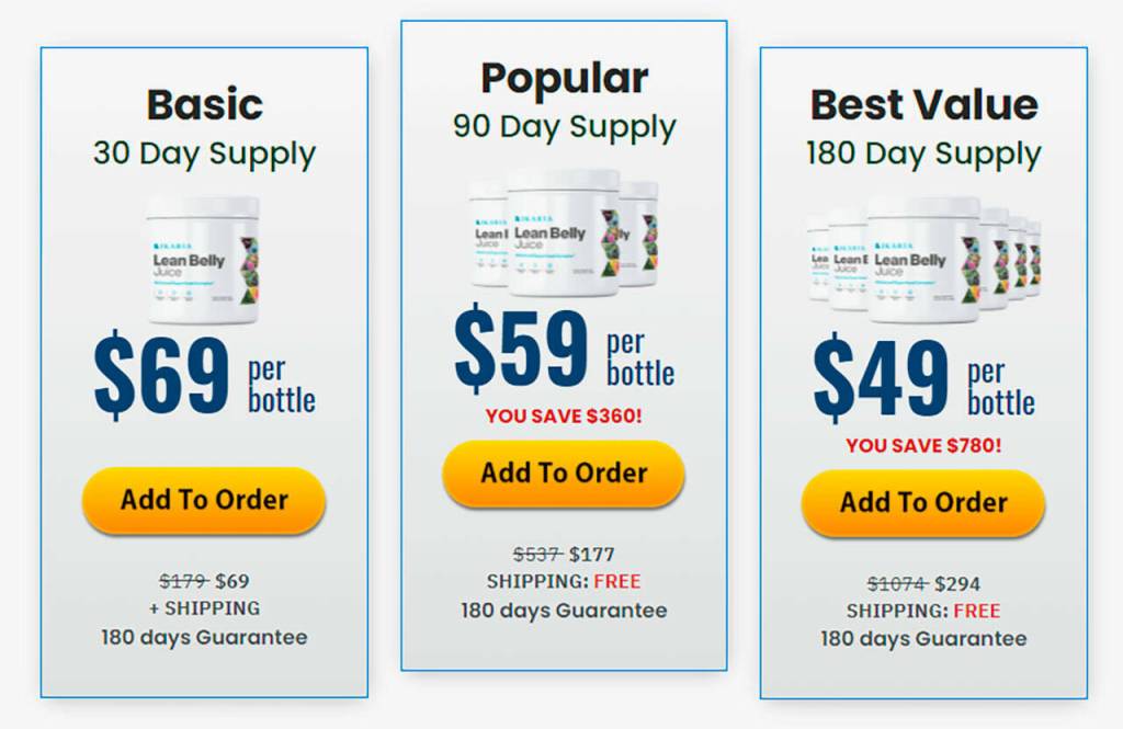 A 30-day supply of Ikaria Lean Belly Juice comes for $69 per bottle. A 90-day supply comes for $59 per bottle. A 180-day supply comes for $49 per bottle. This way, the more you purchase, the more it’s discounted for you. These prices to purchase Lean Belly Juice is completely affordable.