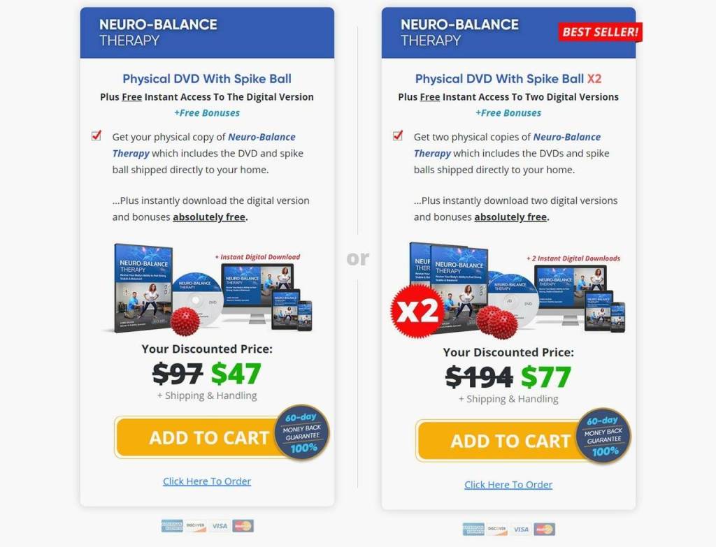 - 1 x Neuro-balance therapy containing 1 DVD and one spike ball + free bonuses – $47