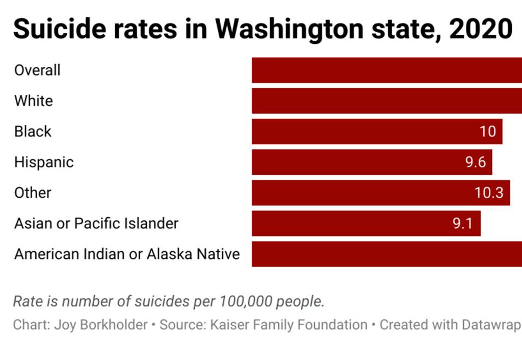 In Washington state, American Indian and Alaska Native people have had a higher suicide rate than all other racial/ethnic groups in nine of the past ten years.