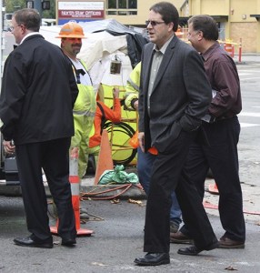 A construction crew working on the Redmond Way Stormwater Treatment Facility project on Saturday cut through fiber and…