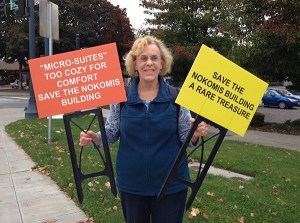 Alexa Munoz and her save the Nokomis building signs.