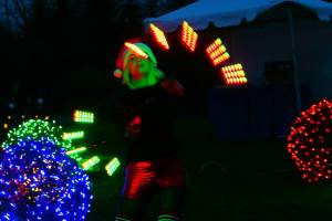 A performer entertains the crowd with an action-packed display of lights at last year’s Redmond Lights event. Thousands…