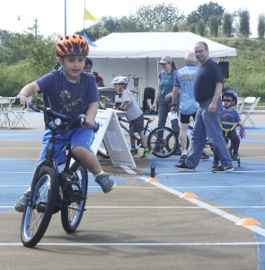 Auggie Kleewein, 6, of Woodinville cruises through the Kids' Bike Rodeo at last Friday's Redmond Bike Bash on…