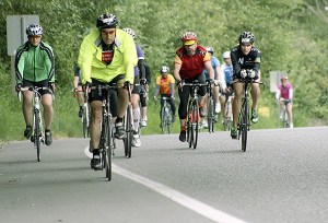 Cyclists cruise up Willows Road in Redmond en route to their next incline during the 7 Hills of…
