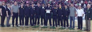 Members of The Overlake School boys basketball team accept their all-state academic award.