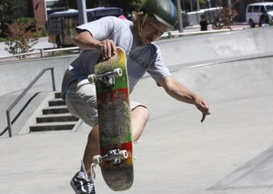 Jacob Campbell concentrates on completing his trick on the side of the bowl at Saturday's ninth annual RedSkate…