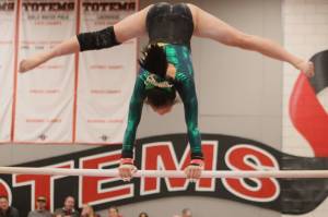 Redmond’s He competes at state gymnastics meet