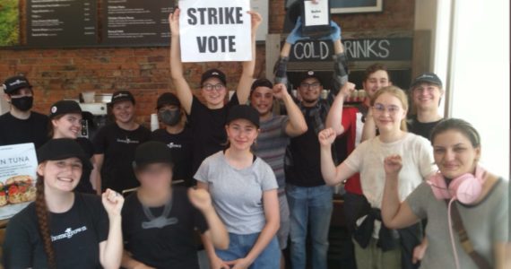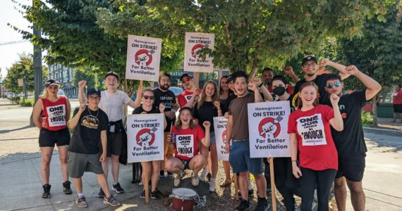 Employees of Homegrown Redmond took to the streets of Northeast Leary Way to protest health and safety concerns.