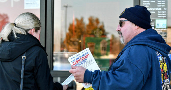 Workers at an Albertsons in Marysville urge shoppers to sign a petition blocking the $25 billion deal.