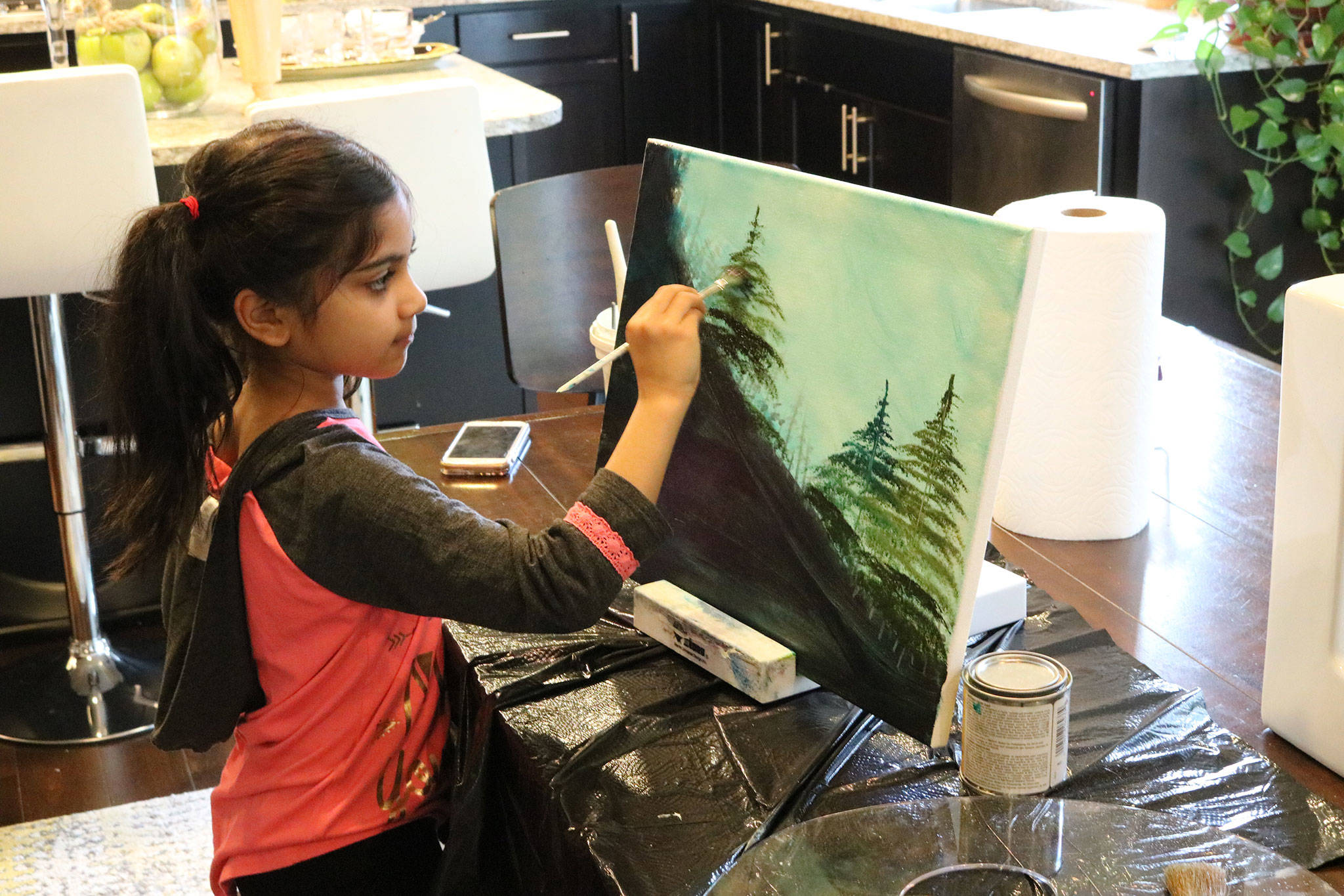 “How she does waterfalls is just so beautiful,” Haritha Kamakoti, Ganjikunta’s mother, said as she watched her daughter paint.