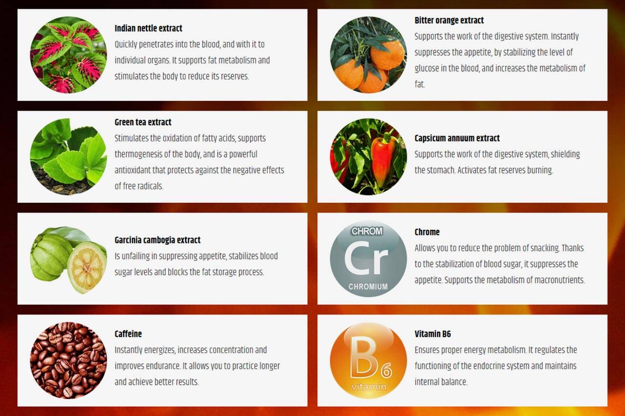 Fast Burn Extreme is presented as a dietary supplement with an extremely efficient composition for rapid weight loss and fat loss. The body is provided support during workouts. Here are this unique formula’s ingredients: