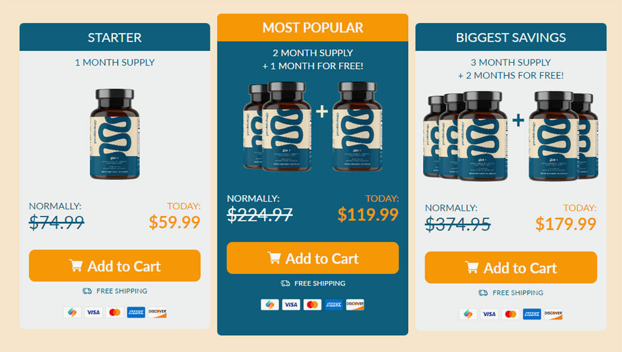 ProBiology Gut+ is currently available for purchase on their website. A single bottle is priced at $59.99, but consumers can save money by ordering multiple bottles. Here are the current pricing arrangements: