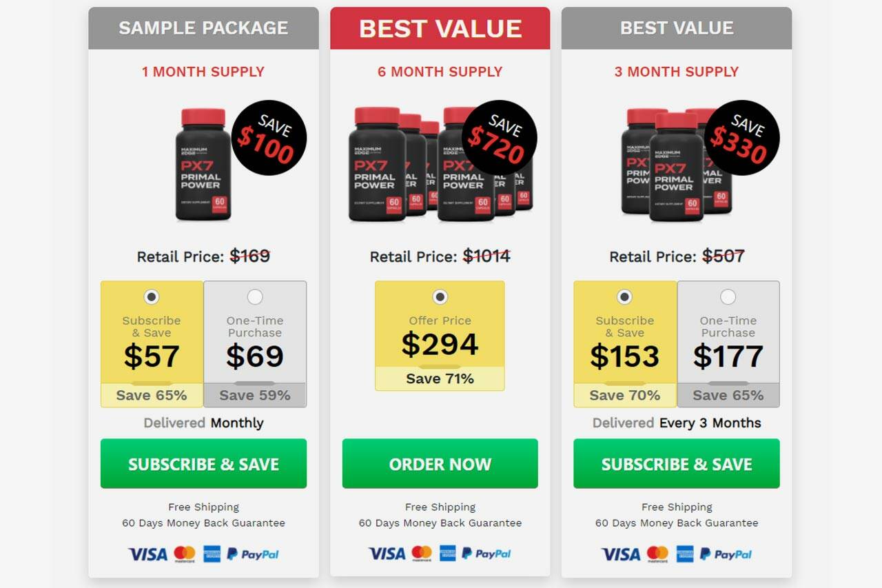 According to the official website, Primal Power PX7 is a supplement design to help the return of man’s long-lost virility. Primal Power claims to help users regain the glory of the yesteryears within just 30 days. The manufacturer also insists that every pill and capsule they produce contains 100% natural, maximum-strength and proven ingredients tailored to help restore waning t-levels without predisposing users further to other debilitating conditions. And this is actually more important than it may sound since the quest for many men to regain the essence of their masculinity is often rife with medical complications, which can be easily avoided by conducting due diligence on any herbal or inorganic testosterone-boosting supplement before commencing its use.