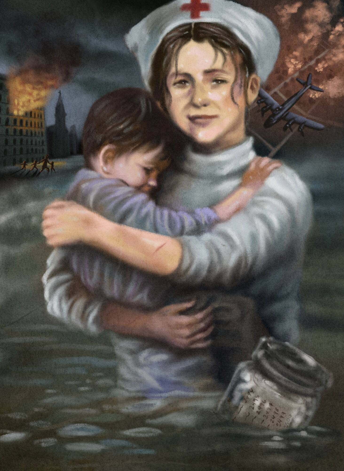 “There was a bunch of different ways she saved a lot of kids,” said Kim. “I wanted to depict one of those ways, and one of those ways was through the churches, and so I wanted to draw some of that in the background.”