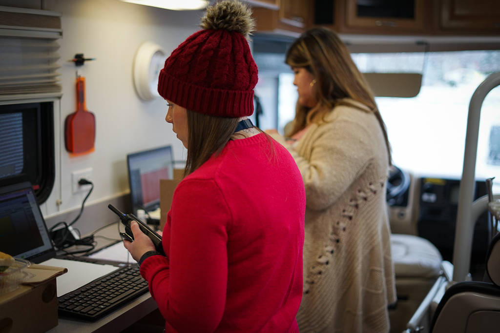 The organization has partnered with Swedish Health Services to set up a drive-by COVID-19 testing site on the Swedish Issaquah Campus, with one of MTI’s dental vans as a command center. The van is similar to the front office of a clinic or doctor’s office where patient in-take and paperwork is handled.
