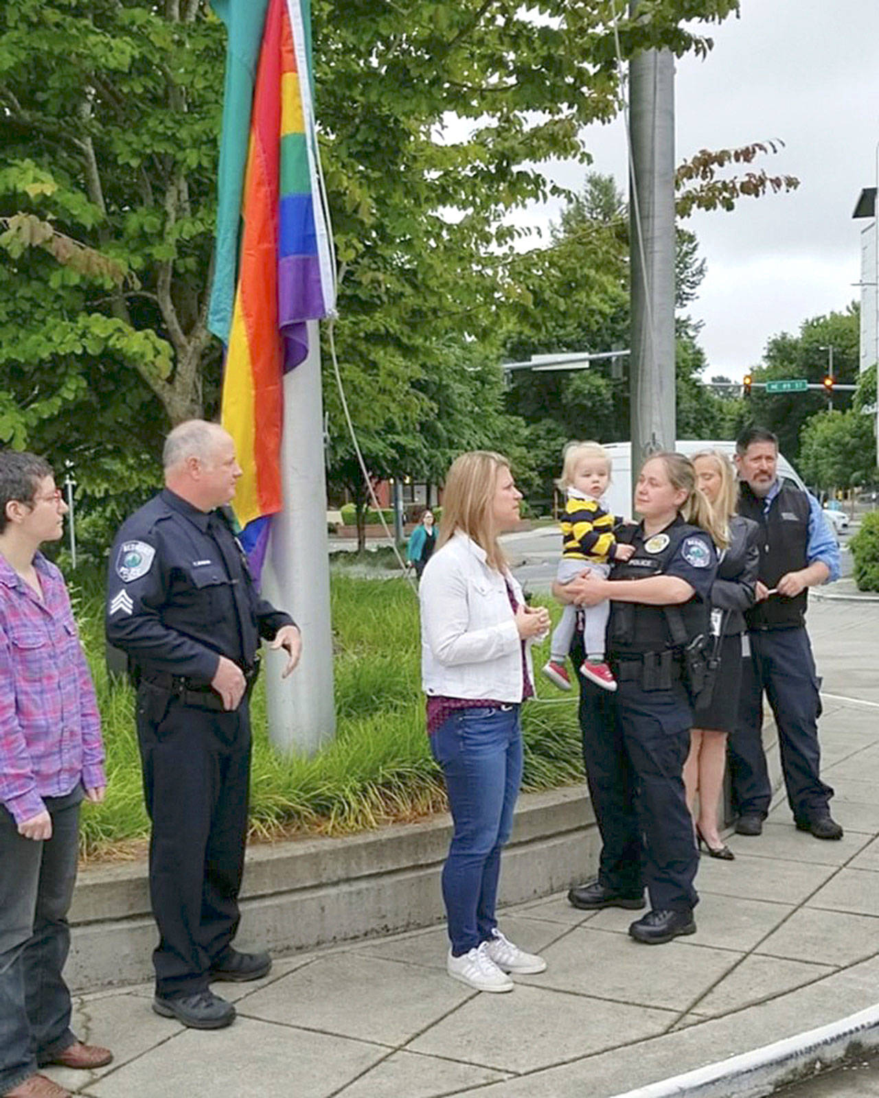 In honor of Pride Month, City Staff and Council President Angela Birney raised the Pride flag at City Hall on June 17. Courtesy photo of City Redmond Facebook