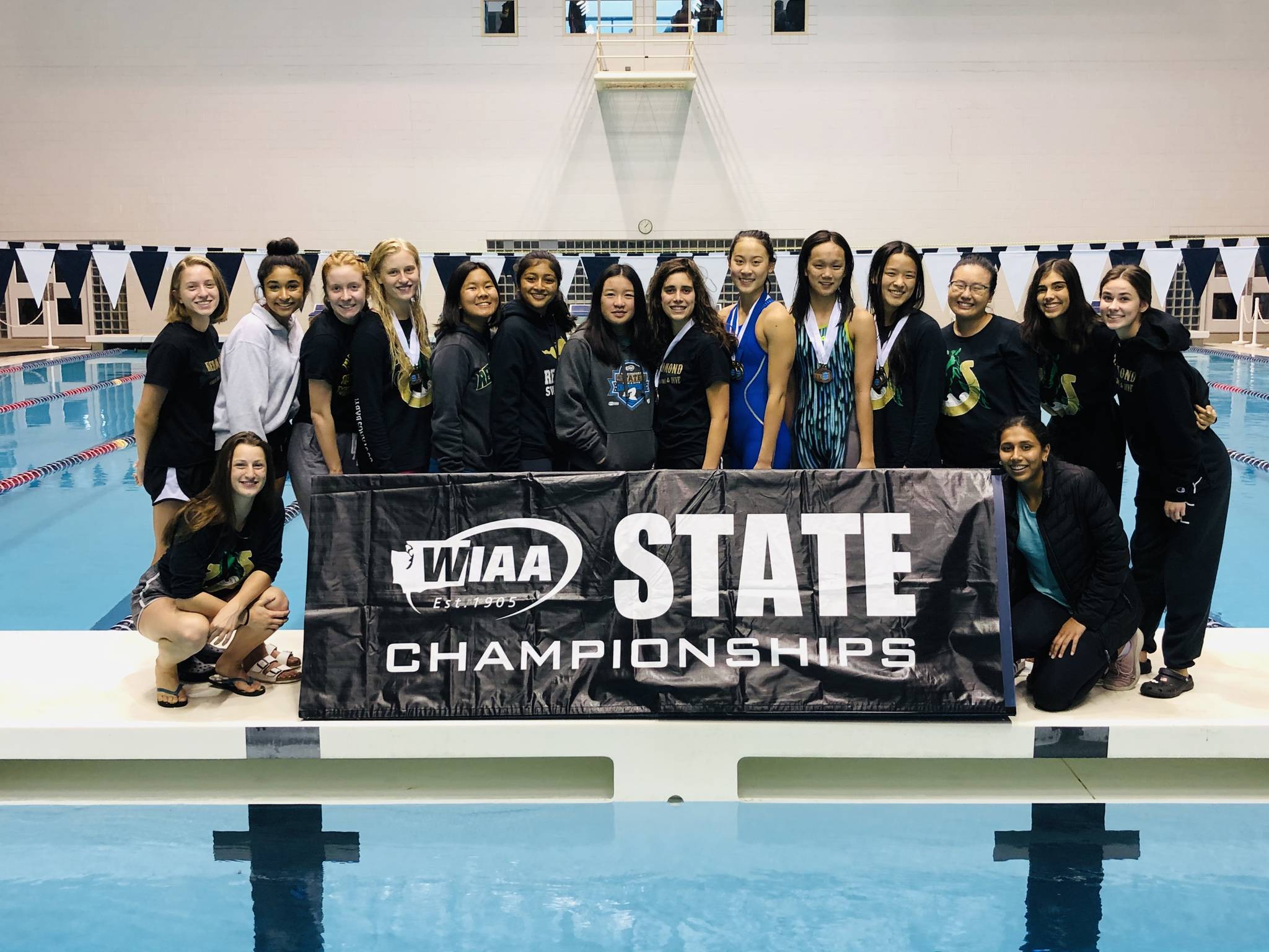 “This is truly an exceptional group of girls, both in the pool as well as the classroom,” the coaches said. “This group of very dedicated athletes has trained all season outdoors at Strattonwood Pool while the Redmond Pool continues renovations.”